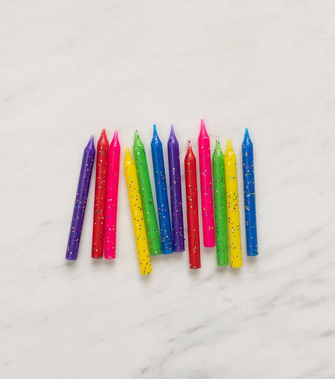Douze bougies courtes multicolores avec paillettes argentées