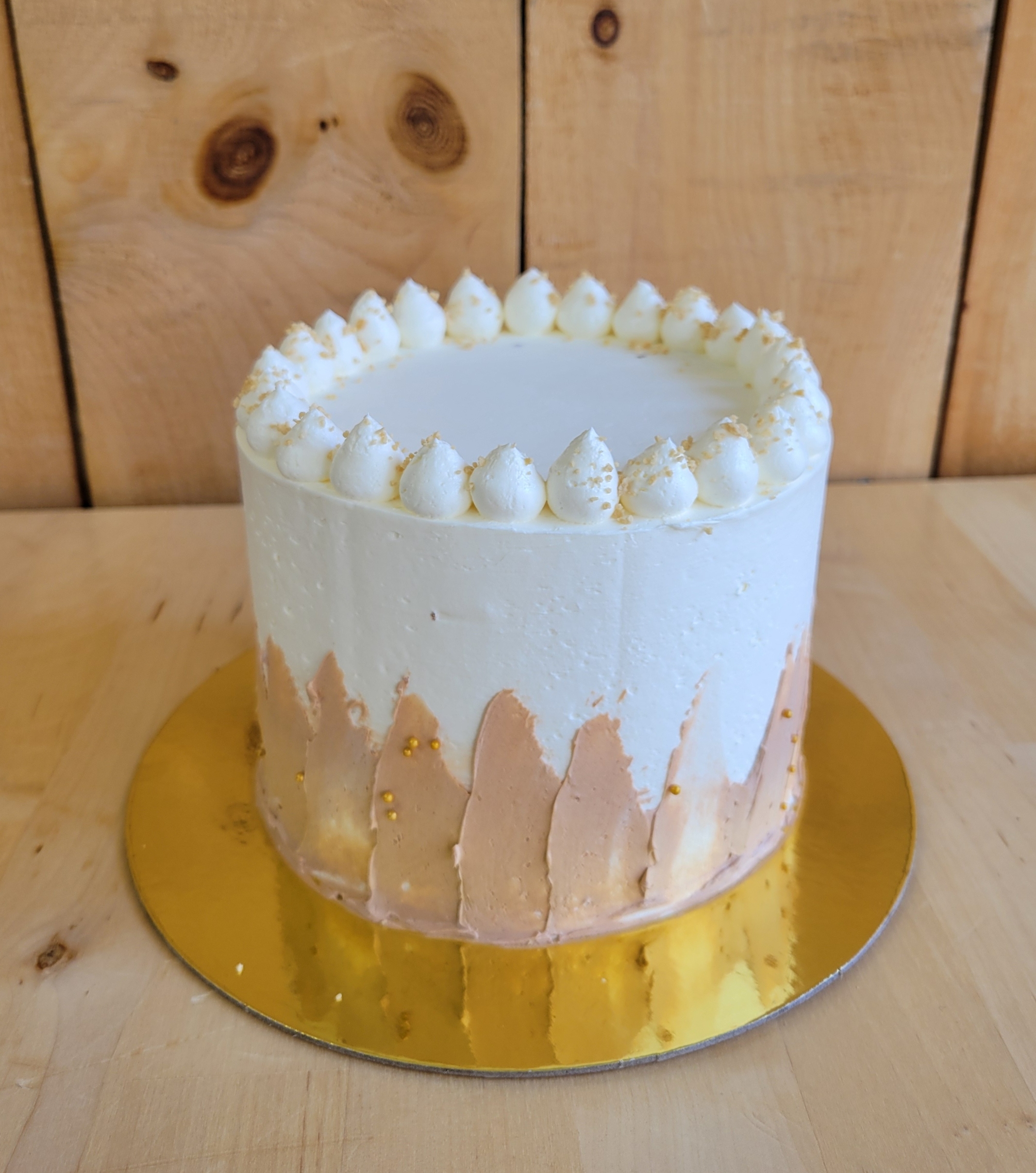 Gâteau à la pomme du Québec, crème légère à l’érable et beurre d’érable. Le gâteau est masqué de crème au beurre à la vanille.