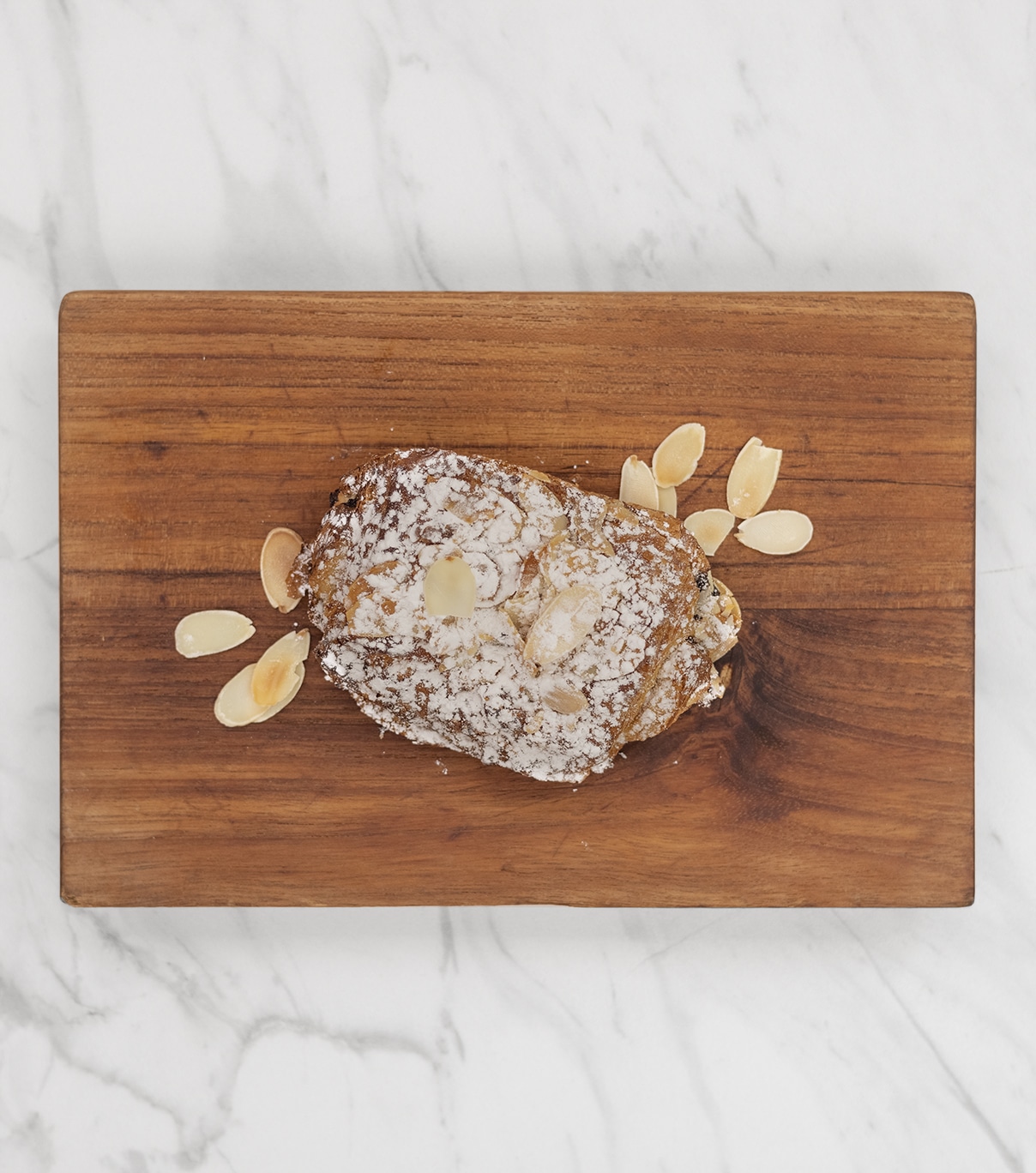 Chocolatine imbibée de notre sirop vanille maison et garni de crème d’amande et amandes effilées.